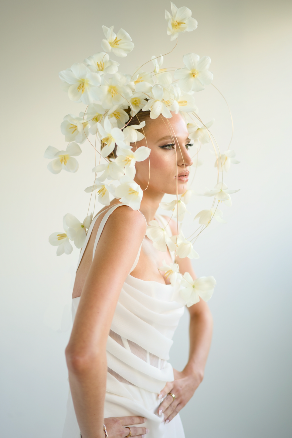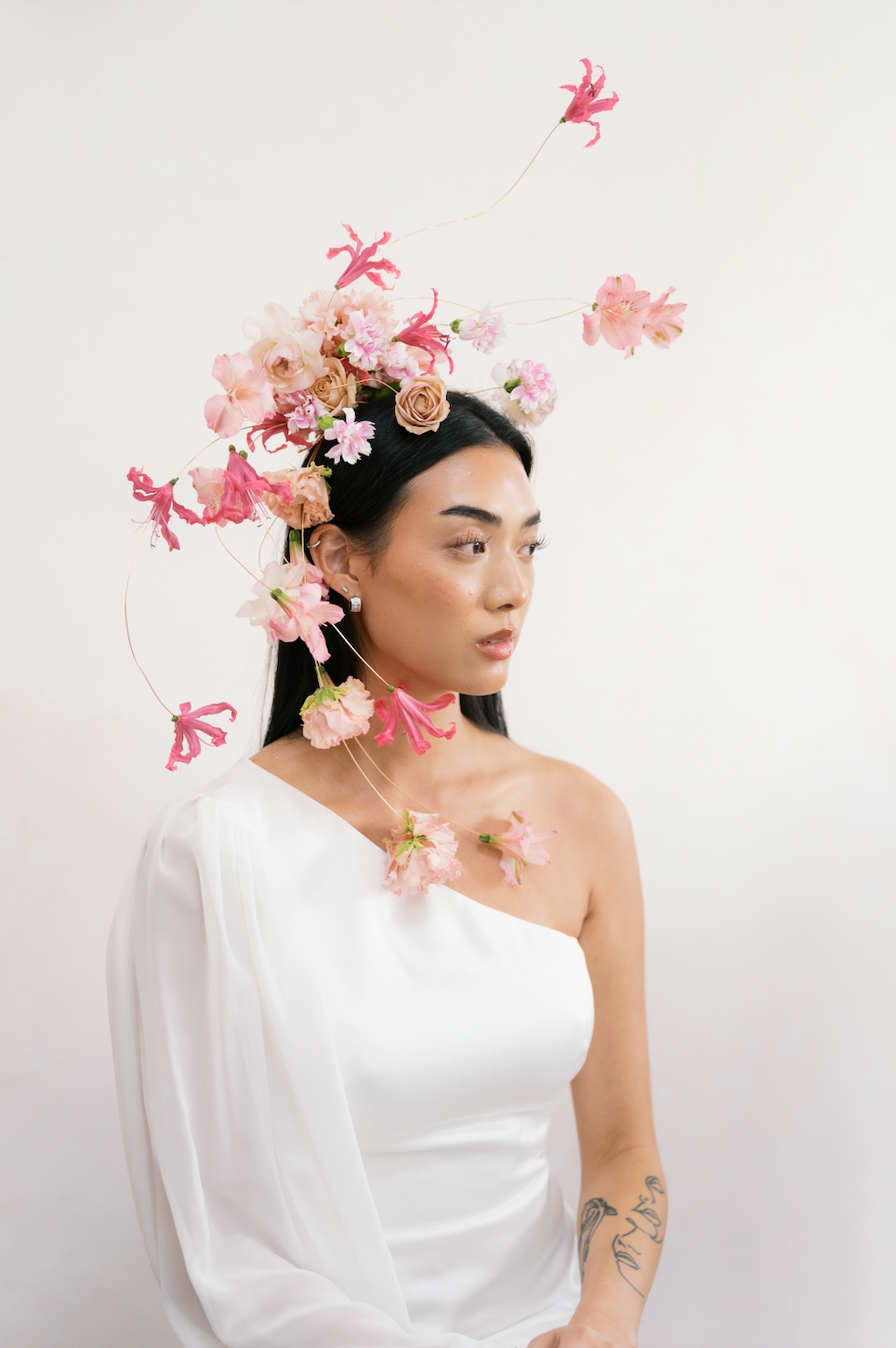 Susan will also demonstrate how to thoughtfully repurpose your bracelet bouquet into a headpiece, highlighting the versatility of contemporary floral design and encouraging a more considered, sustainable approach to creative work. This dual-purpose exercise illustrates how one design can evolve into multiple expressions, maximising both impact and material use.